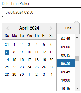 Chemotion LabIMotionDesigner GuidesComponentsFieldsTypesDate-Time PickerDate-Time PickerReader: Designer A Date-Time Picker type field allows users to select a specific date and time from a calendar or input field. DateTime Picker field type